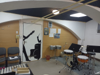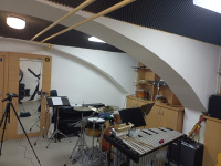 V jedné ze zdí byly dva velké výklenky a v nich byly umístěné skříně. Celý prostor působil těžce, tmavě, stísněně a akusticky velmi nevyváženě. Zvuk unikající do zbytku školy byl dalším problémem: výuka bicích v odpoledních hodinách znamenala neustálé kompromisy.