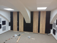 Po doplnění těchto prvků jsme provedli finální měření a závěrečný subjektivní poslech. Místnost je definitivně stabilizovaná — dozvuk i rovnoměrná distribuce zvuku odpovídá požadavkům praxe a smyslu pro živou hudbu.