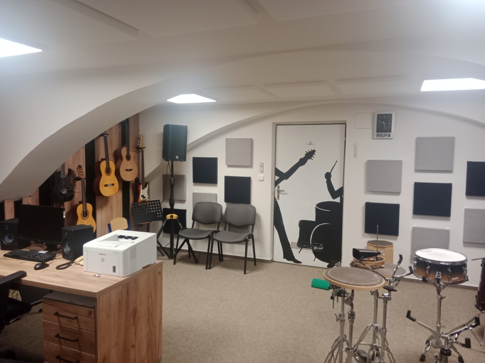 „V létě byla zahájena rozsáhlá a náročná oprava sklepní učebny našich bubeníků. Byla provedena kvalitní a funkční akustická úprava místnosti, která výrazně zlepšila zvukové podmínky pro výuku. Celkový estetický dojem učebny je velmi moderní a příjemný, což podporuje tvůrčí atmosféru při práci s hudbou. Prostor splňuje všechny požadavky pro moderní výuku. Firma PROTIHLUKU profesionálně zpracovala a realizovala akustiku. Náš specifický, sklepní prostor pan Branný proměnil v útulnou a hlavně funkční učebnu. Oceňuji jeho profesionální přístup, vstřícnou komunikaci, ochotu řešit detaily. Děkuji za spolupráci a doporučuji spolupráci s ním.“