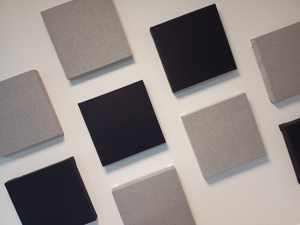 S pevnou základnou v podobě bastrapy jsme přistoupili k drobnějším, ale zásadním krokům. Na strop jsme instalovali lokální melaminové čtverce. Záměrně jsme se vyhnuli plošnému polepu, abychom místnost nepřetlumili a neztratili tak její hudební „živost“. Důležité je v tomto bodě vychytat to správné rozmístění - kritická místa jsou tam, kde dochází k primárním odrazům zvuku.